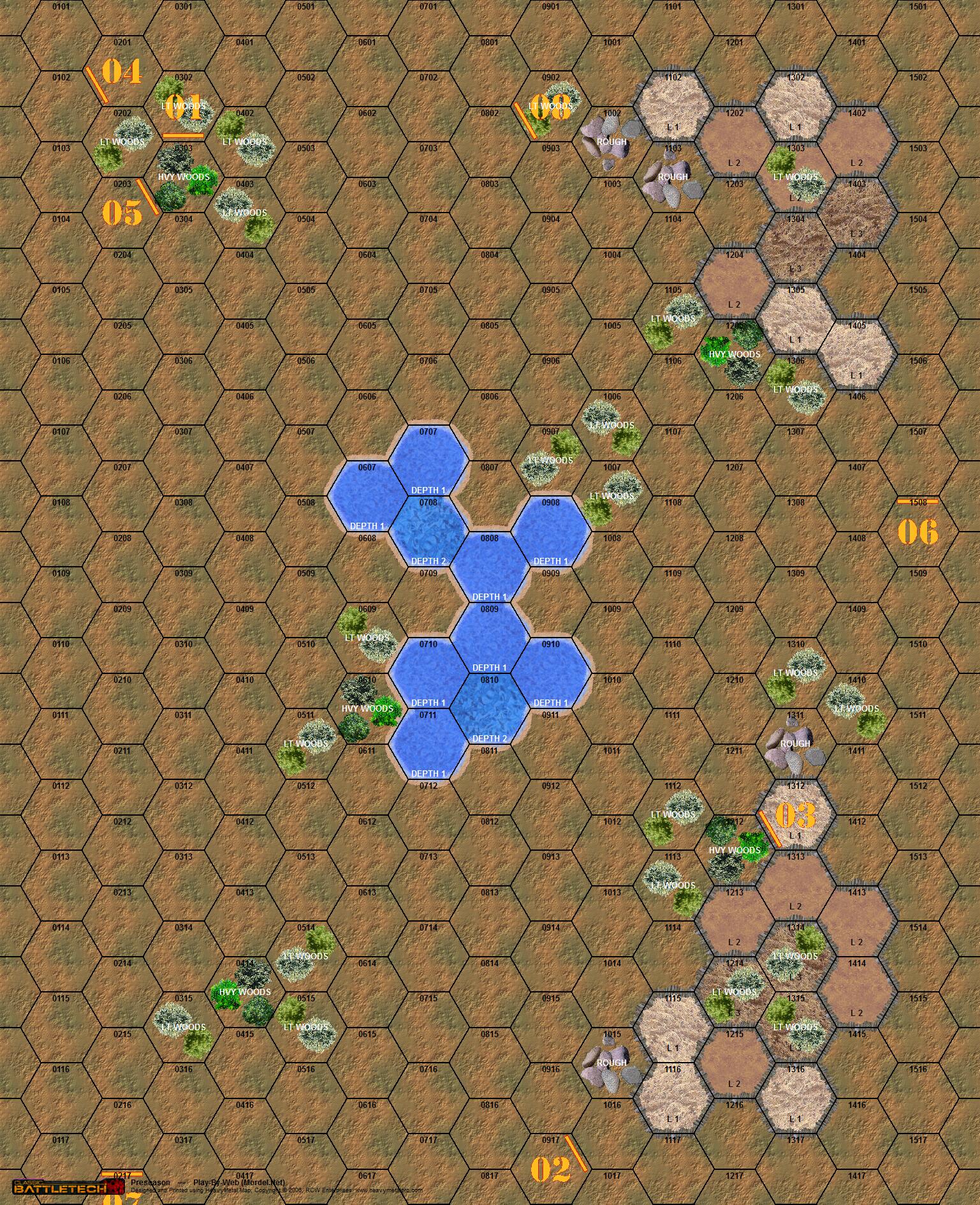 | Turn 4 Movement | | | 6. | Daishi100 | 1505F1 | Run 5 Hexes | 1510F4 | | 4. | Stinger07 | 0610F6 | Remain prone, no facing change | 0610F6 | | 2. | jymset | 1212F1 | Stay put | 1212F1 | | 5. | chihawk | 0103F3 | Run 7 Hexes | 0110F3 | | 3. | PaWeasley | 0714F6 | Run 3 Hexes | 0415F6 | | 7. | Pinhead | 0217F1 | Jump 6 Hexes | 0817F1 | | 1. | Vagabond | 1205F6 | Run 7 Hexes | 0502F5 | | 8. | Chunga | 0901F4 | Jump 6 Hexes | 1404F4 |